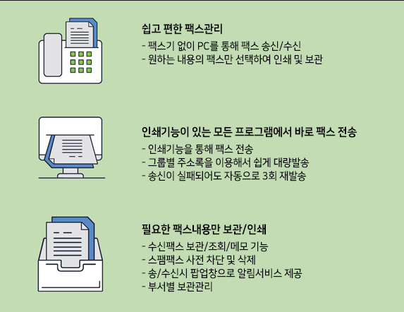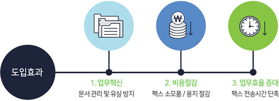 기존의 번거롭고 복잡한 팩스업무를 간편한 송수신, 효율적인 관리, 비용절감 효과까지 한번에 해결할 수 있습니다.